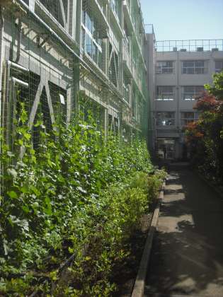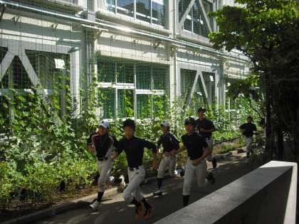 朝からよい天気です。さわやかな空気の中、緑のカーテンも初夏の日差しを浴びてぐんぐん伸びていきます。そんな中庭を朝練習の野球部がランニングしていきました。今日も一日がんばりましょう。(副校長)