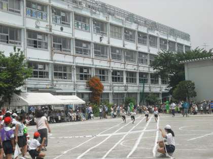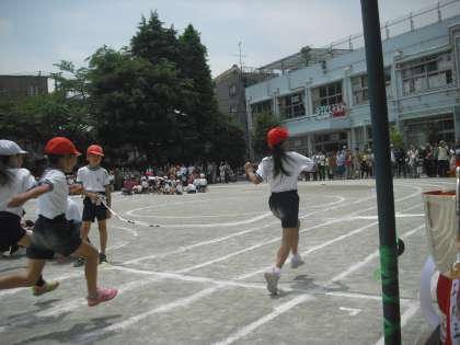 短距離走では、みんな全力を出してがんばっていました。ゴールした時の表情がよかったですね。未就学児のゴールでのお手伝いは、おにいさん、おねえさんらしさを発揮していて、ほほえましかったです。校庭の木々もみんな活躍を見守っていましたね。(副校長)