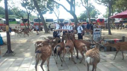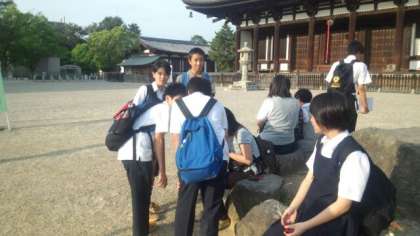 興福寺から宿舎はすぐです。もう少しです。みんな日焼けしていますね。