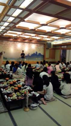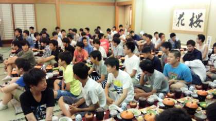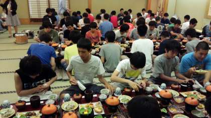 待ちに待った晩御飯です。宿舎の方が心をこめて作って下さったご飯です。味わって食べてください。(藤本)