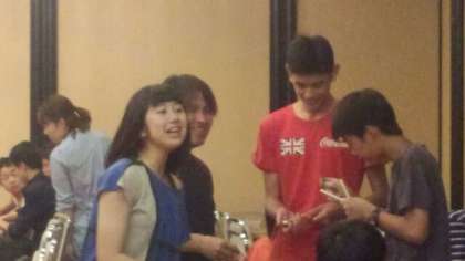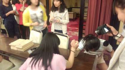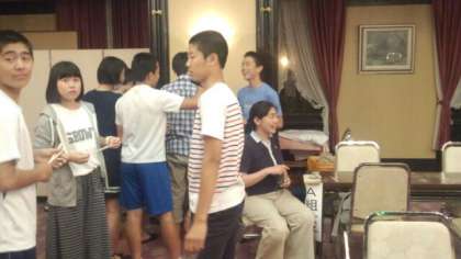 箸に自分のデザインを入れる作業待ちです。女子が腕相撲をしていますね。この後は入浴です。