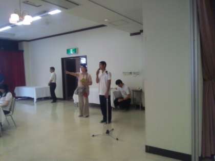 朝食、離宿式の後、琵琶湖畔で学年全員の写真を撮りました。(遠藤)