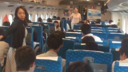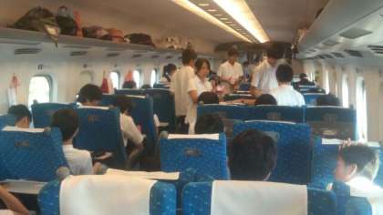 名古屋を過ぎてドーナツとジュースが食事係から配られました。