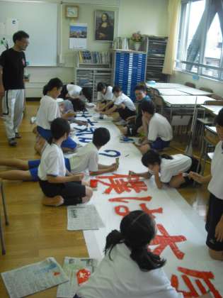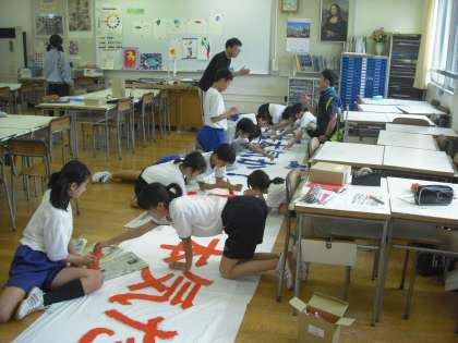 スローガンが「君は本気か?僕は本気だ!」に決まりました。さっそく体育委員さんが、放課後に垂れ幕づくりの作業に入りました。運動会まであと4日です。さまざまなところで準備が行われていますね。(副校長)