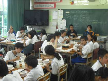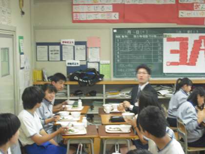 3週間の教育実習は「あっ!!」という間でした。毎日食べてきた給食も今日が最後です。クラスのみんな、実習の先生とたくさんお話しできましたか?授業で部活動で、そして運動会の練習で共に過ごした時間を話題に会食しました。先生方ありがとうございました。(副校長)