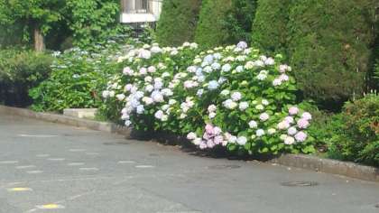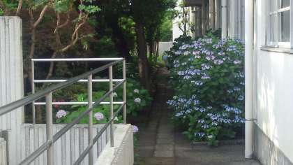 梅雨の時期になりました。駒沢中学校のあじさいも満開です。