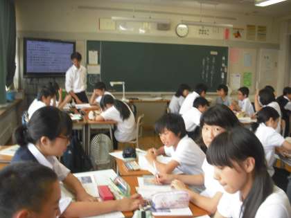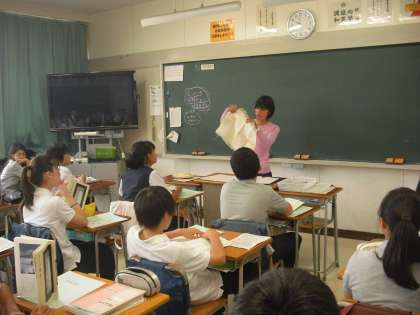 2時間目は、越後縮を題材にして、「日本語」の授業です。雪国で暮らす人々と風土が織りなしてできた越後縮のお話しから、雪国での暮らしからどのようなことを考え、そして過ごしていたのかを思い巡らすことができたかな。そして自分が出かけてみたらどのようなところかな?考える1時間でした。(副校長)
