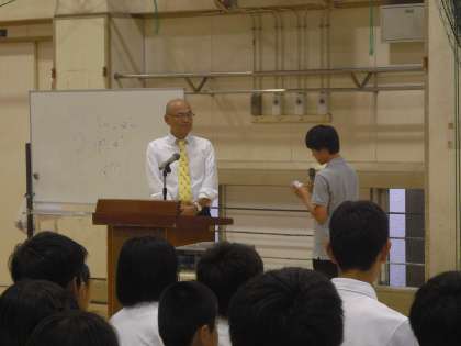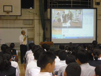 「救缶鳥プロジェクト」を主催する秋元義彦様にお越しいただき、世界各地の災害への支援活動の様子と救缶鳥を通じてつながる社会のお話しを頂戴しました。秋元さんの「生きる勇気がわくって孤独じゃないってことだよね。」という言葉が印象的でした。くまざわくんの缶が世界の各地へ送られることで、自分が世界のみんなとつながっていると実感できますね。(副校長)