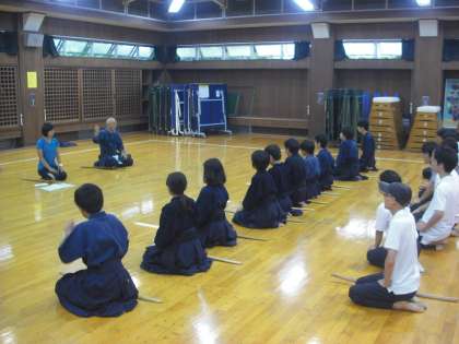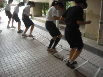 体育館が使えない日でも部活動は真剣にがんばっています。バドミントン部は格技室の前でのトレーニング、格技室の中からは吹奏楽部や剣道部の練習の音が響いています。放課後の駒沢中学校はとても活気にあふれています。(副校長)
