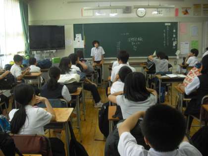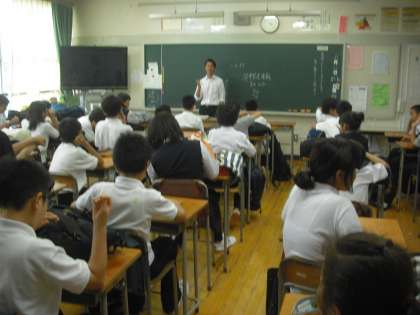 帰りの学活で明日の連絡をしています。明日は試験とともに提出物もあります。計画立てて準備した成果がでますように。この3日間も時間を大切に、そして健康面も十分注意して過ごしてください。ちなみに写真の1年生クラスは座席も出席番号順に変わり机の中にものがない試験バージョンになっています。(副校長)