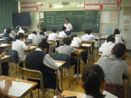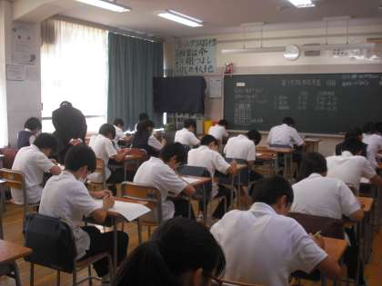 24日(水)〜26日(金)は期末考査です。1日目の今日は理科・国語・保健体育です。みんな真剣に問題用紙にむかっています。2年A組の今日のめあては「最後まで集中!!全力!!」です。どのクラスも学年も、みんな頑張って今日のめあてを達成できそうですね。(副校長)