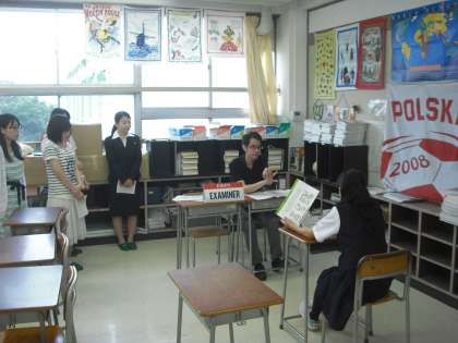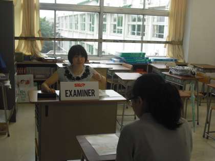 今日の英検教室は英語検定の模擬面接です。1対1で英語だけで面接は進みます。真剣に受け答えしている姿が印象的でした。こうした練習体験はとても大切ですね。取得めざしてがんばってください。(副校長)