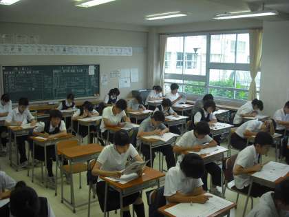 2年生は「学力向上を図るための調査」です。5教科の学力調査にみんな真剣に取り組んでいます。今日のテストの結果から、今までに学習してきた内容をふり返る機会となります。これからの学習の方法に活かしてください。(副校長)