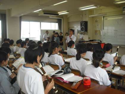本日、光明特別支援学校の生徒さんが駒沢中学校のみんなと一緒に学習するために、来校しました。学年集会から参加して、その後は昇降機で4階まであがって1年生の音楽の授業を見学しました。これからもふれあう機会があると思います。日頃の学校の様子などお話しするなど交流してください。どうぞよろしくお願いします。(副校長)