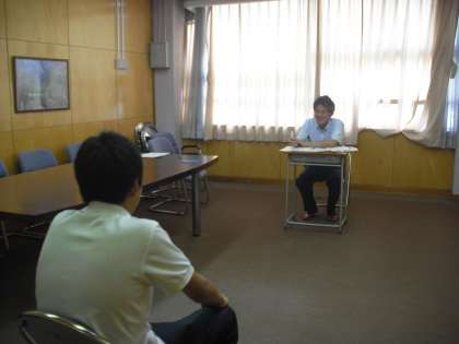 3年生全員対象で校長先生と副校長による面接練習が今日からスタートしました。3年生になっての学校の様子や印象に残った出来事、自己分析や将来についてなど自分自身をふり返るまとめる機会としてください。これから夏休み、3年生はすべきことがさまざまにあります。めあてを持ち取り組んでいきましょう。(副校長)