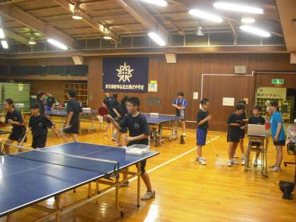 今日は格技室では卓球部が練習しています。ラリー黙々と練習に打ち込んでいました。暑さにまけずがんばりましょう。(副校長)