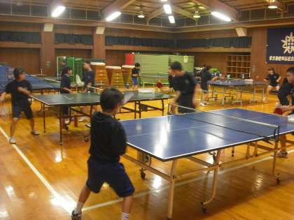 卓球部が練習中