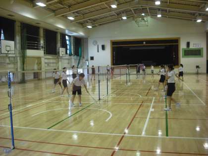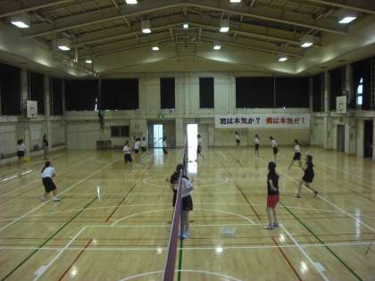 土曜日も体育館からは元気なみんなの声が響きます。バドミントン部の活動は空気の動きには敏感!熱気あふれる練習を展開しています。体育館では午前中は、男子バレーが、そしてこの後はバスケットボール部が頑張っています。(副校長)