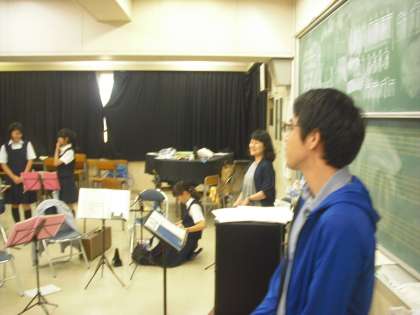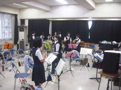 そして音楽室からは、吹奏楽部!朝からの練習頑張っていました。いよいよ本番ですね。練習の集大成をみせてください。練習後のみんなの様子を立川先生、森川先生も見守っています。(副校長)