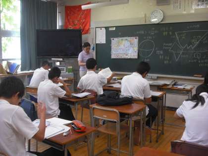 3年生は社会の補習教室です。夏休みの期間、集中して地理の知識の復習に取り組んでいます。平山先生が黒板や副教材やプリントを使って名称を確認していきます。みんながんばっていますね。(副校長)