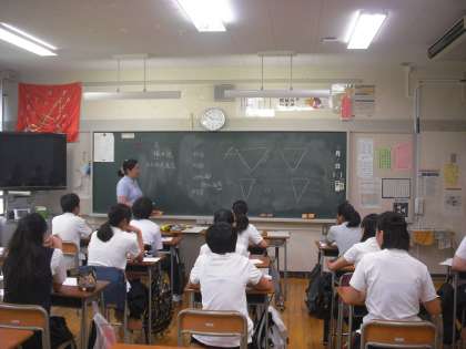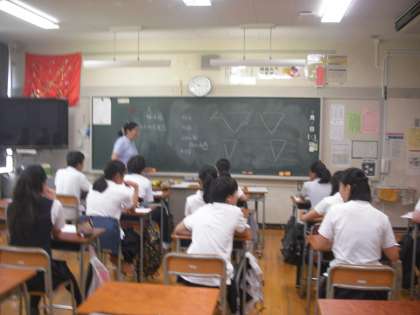 連日の暑さの中、今日も社会の補習が3年A組の教室で行われています。平山先生、3年生のみなさん毎日がんばっていますね。(副校長)