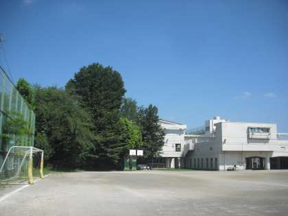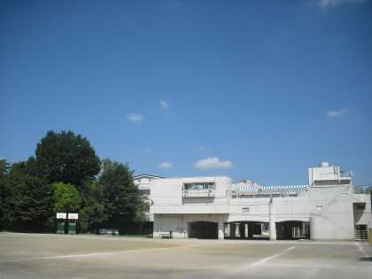 夏休み中はサッカーや野球部の練習が盛んでしたが、今日は校庭は部活動を行っていません。静かな校庭です。夏の青空をバックにタンチ山と体育館の様子です。心なしかのんびりした雰囲気です。(副校長)