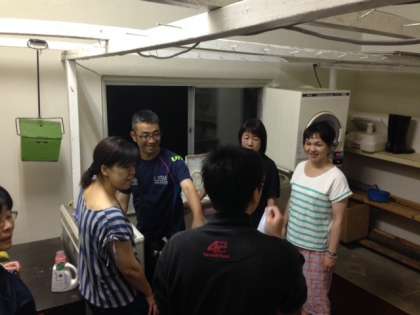 同行してくださっている保護者の皆様が洗濯してくださっています。本当にありがたいです。生徒自身も洗剤の量や洗濯の仕方など、これから経験して知っていってもらいたいです。こうした学習も今回の成果でしょう。(稲葉)