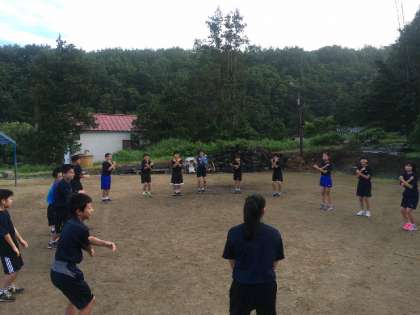合宿2日目の始まりです。卓球部は朝の体操をしてから、練習開始です!練習の疲れを癒す宿舎の露天風呂に大喜びでした!(佐野)