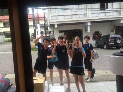合宿も3日目です。起床後の朝の体操から朝食、練習場へ出発、練習準備と1日の流れができています。みんな、こちらの環境に適応し、自分たちで暗幕を閉めたり、集合時間までに準備するなどできていましす。(佐野)