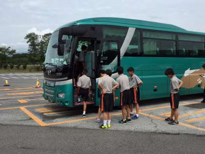 サッカー部は試合の関係でこれから帰ります。9時に、磐梯熱海から東北道のりました。那須高原で休憩中です。(水田)