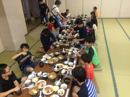 3泊4日の合宿もいよいよ大詰めです。これから花見屋での最後の夕食です。これまでの思い出話で盛り上がります!!(佐野)