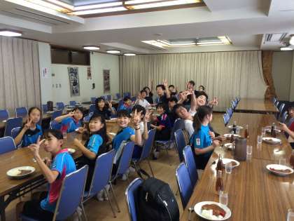 卓球部は練習を打ち上げました。最後、体育館を掃除し、撤収です。4日間ありがとうございました!宿での最後の食事は、カレーです。みんな元気でパクパク食べています!(佐野)