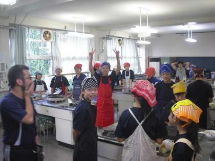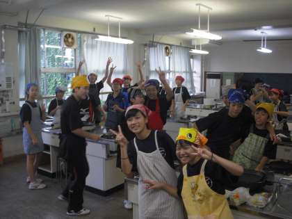 今日は調理室で卓球部が活動していました。夏休みの練習の打ち上げを兼ねての中絵食会です。この夏はいっぱいいっぱい練習しましたね。この練習量に自信をもってこれからに臨んでください。(副校長)