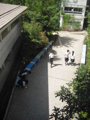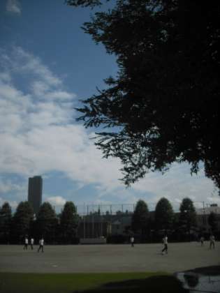 久々に現れた青空です。みんなも校庭や中庭でのびのびとした様子で昼休みを過ごしています。むし暑くなってきましたが、ちょっと懐かしく夏の名残を感じさせます。ゆったり過ごして午後の授業もがんばりましょう。(副校長)