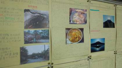 各学年とも、廊下にたくさんの掲示物が張ってあります。3年生は高校のポスターが、2年生は上級学校訪問の報告書が、そして、1年生は河口湖移動教室の調べ学習の成果が、時季に応じて掲示されていますね。