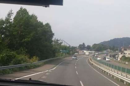富士急ハイランドも見えてきて、富士山も近づいてきました。高速道路も降りて次の富士レーダードームまでもう少しです。