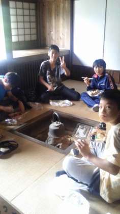 お待ちかねのお弁当です。それにしても、御師の家は広いですね。学校全員が入ることができました。(副校長)