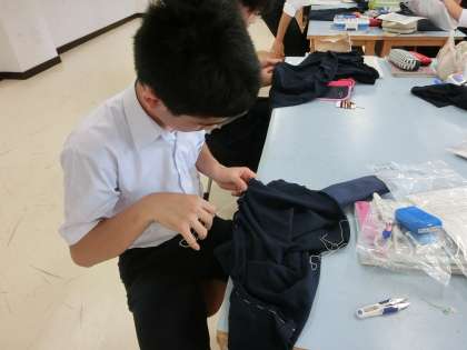 家庭科の授業で、Tシャツを製作しています。校内作品展に展示するので、みんな真剣に取り組んでいますね。(遠藤)
