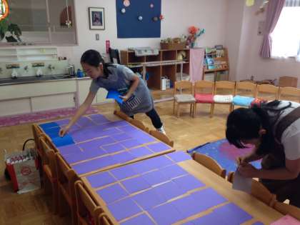 コドモの園 幼稚園の様子です。今日は、午前保育の為、午後は各クラスで使う折り紙セットを作っていました。午前中は、パワフルな園児と氷鬼をしたりして遊んだそうです。(小嶋)
