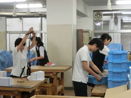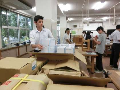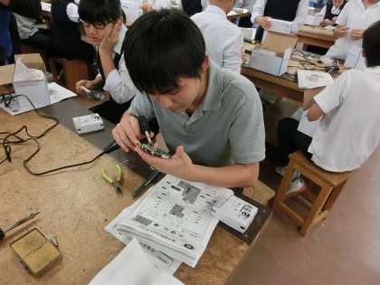自分たちで作成した半田ごてを使って、ラジオを作っています。授業後には、机ごとに分担して片づけをしていました。さすが3年生ですね。(遠藤)