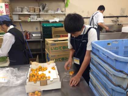 紀伊国屋等々力店です。プチトマトをパック詰したり、商品を棚に補充したりしていました。商品をどこへ並べるのか場所を探すのに一苦労です。(小嶋)