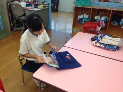 三宿さくら幼稚園の様子です。週末に持って帰るお知らせなどをバックに詰めていました。あと1日です。明日もがんばってください。(小嶋)