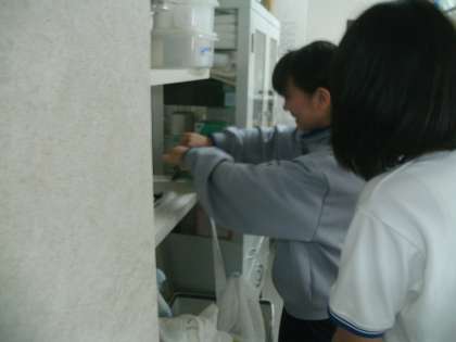 小林接骨院では包帯の準備をしています(左写真)。ジャン・クロード・ビギン三軒茶屋店(美容院)では鏡をきれいにみがいています(右写真)。お客さんが来る前の準備が大切ですよね。(角田)
