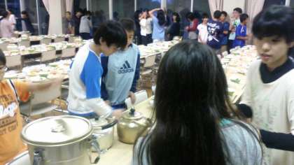 食事係さんは毎食の配膳、保健係さんは水筒の用意、みんなの移動教室を支えていました。ありがとうございます。(副校長)