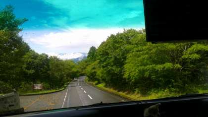 バスで下りると、青空になりました。天気は変わりやすいですね。ちょっと残念だったけど、バスの中ではみんな元気です!!(副校長)