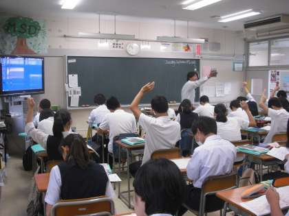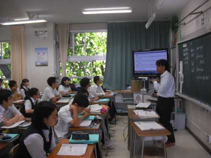 ワークなどでの会話、稲葉先生の授業はall Englishで進んでいきます。みんなよく活動していましたね。The English class for the thrid years was learning about "indirect questions". It started from BINGO, assignment check, and to pair work for conversation practice. Mr.Inaba's class is conducted all in English. Every student was working very hard.(副校長 translated by Morikawa)
