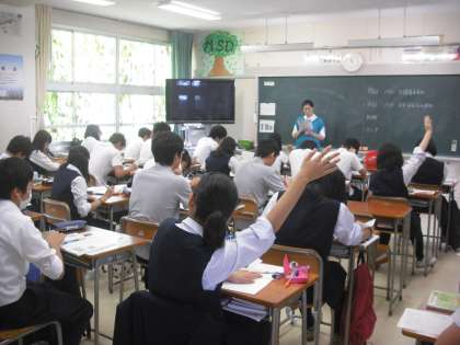 日本と周辺の国々との関係についてまとめています。日本との交流や課題などを整理しました。それをふまえて日本の貢献について考えます。自分が関心を持った視点で考えをまとめることができましたか。(副校長)