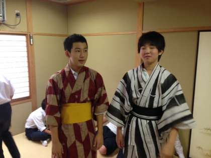 第3学年の教科「日本語」日本文化では、浴衣を着る体験学習を実施しました。浴衣についての事前学習を踏まえたものの、実際に身につけてみると、難しさがよくわかりました。