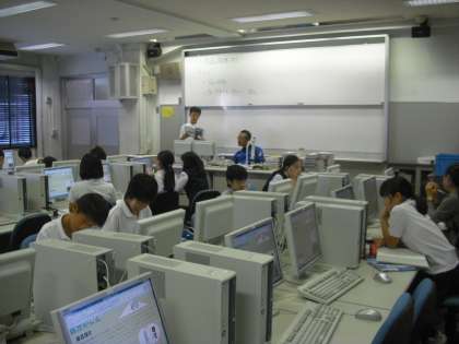 1年生の技術の授業では、1学期から取り組んできたレポートの発表です。みんなそれぞれに工夫をしたところを発表しました。キャラクターのことなど水田先生が一つひとつにコメントしてくださいました。(副校長)