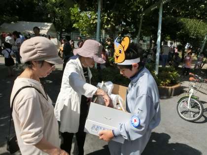 福島産の野菜は見事完売しました!みんなで「どうしたら野菜を買ってもらうことができるか」を考え、色々なアイデアを出し合っていました。地域の方々からも「本当によく働いてくれる。」と、感謝とお褒めの言葉をいただきました。(遠藤)